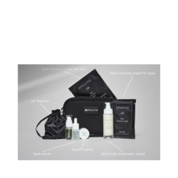 A new set made for all your needs on the go, complete with our Oil Cleanser, Lipid Serum, Hyvia Crème, Travel Lipid Body Treatment, and Lipid Recovery Mask for Face and Eyes. It also makes the perfect travel companion.